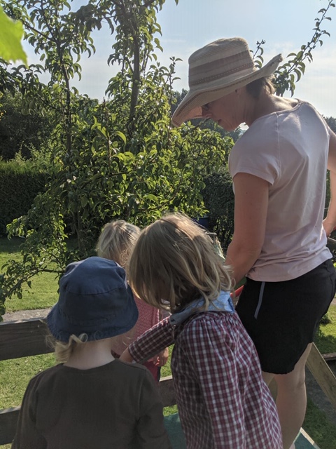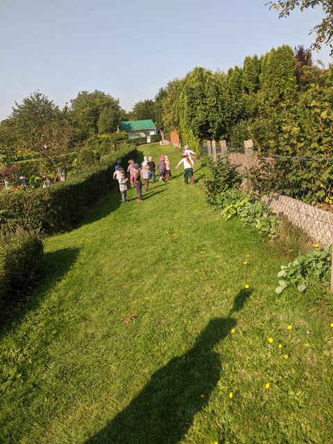 An einem sonnigen und warmen Spätsommertag konnten unsere Walduhus, in einem angrenzenden Schrebergarten, Birnen pflücken. Nach getaner Arbeit, stärkten sich die Waldkinder beim Pickknick mit leckerem Kuchen und frischen Birnen.