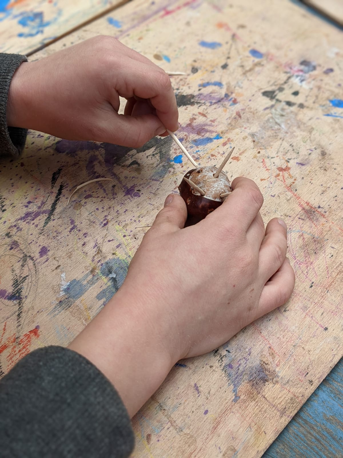 Die Blätter färben sich goldgelb, Kastanien fallen von den Bäumen und endlich ist es Zeit, Kastanien zu sammeln und damit zu basteln, eigenen Apfelpunsch zu trinken und die Laternen für unser kommendes Lichterfest zu gestalten.